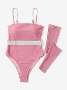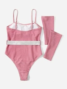 Sweetness Glitter One Piece Swimsuit With Detachable Sleeves