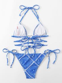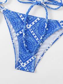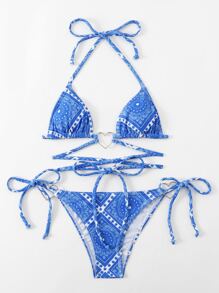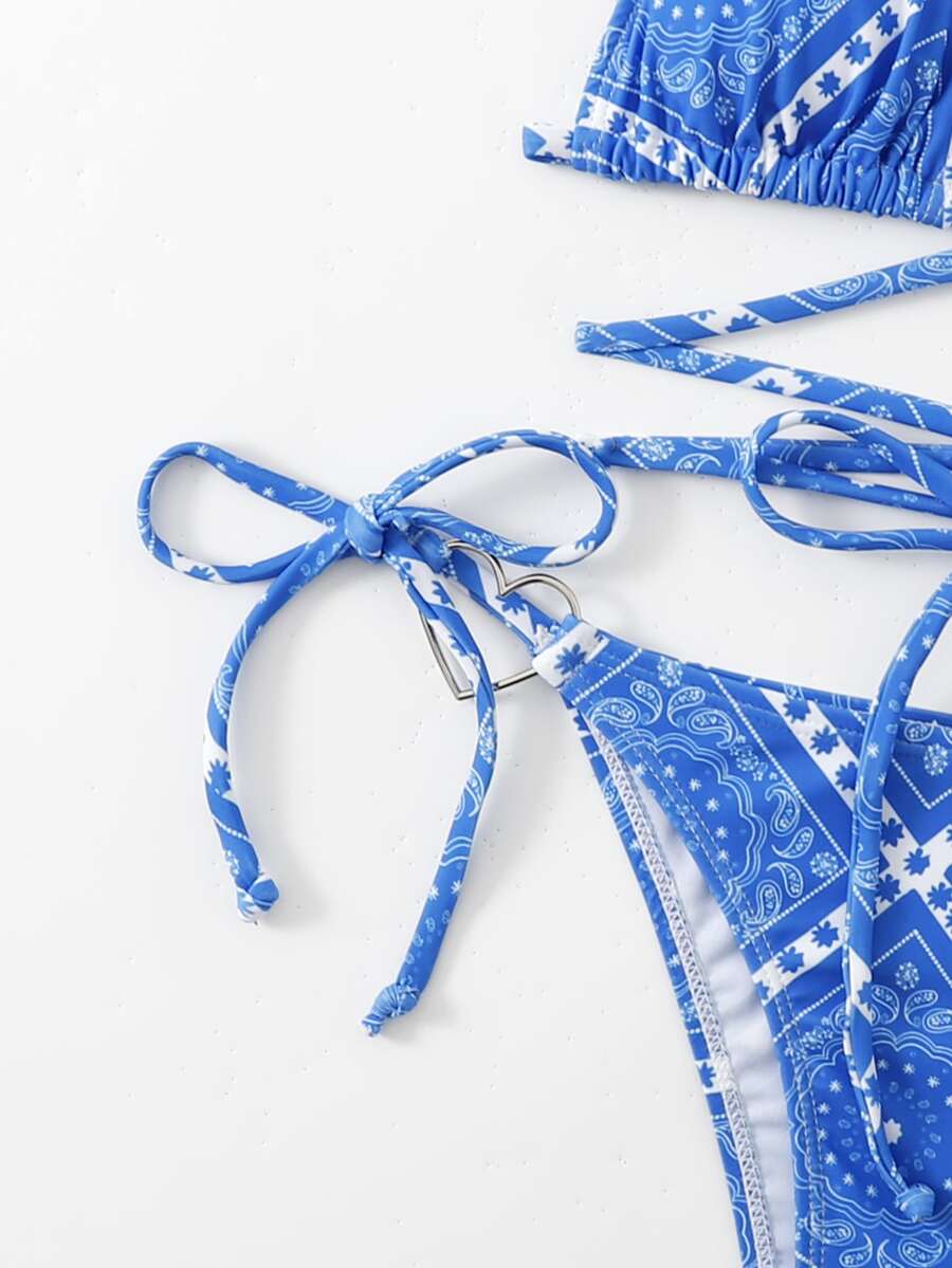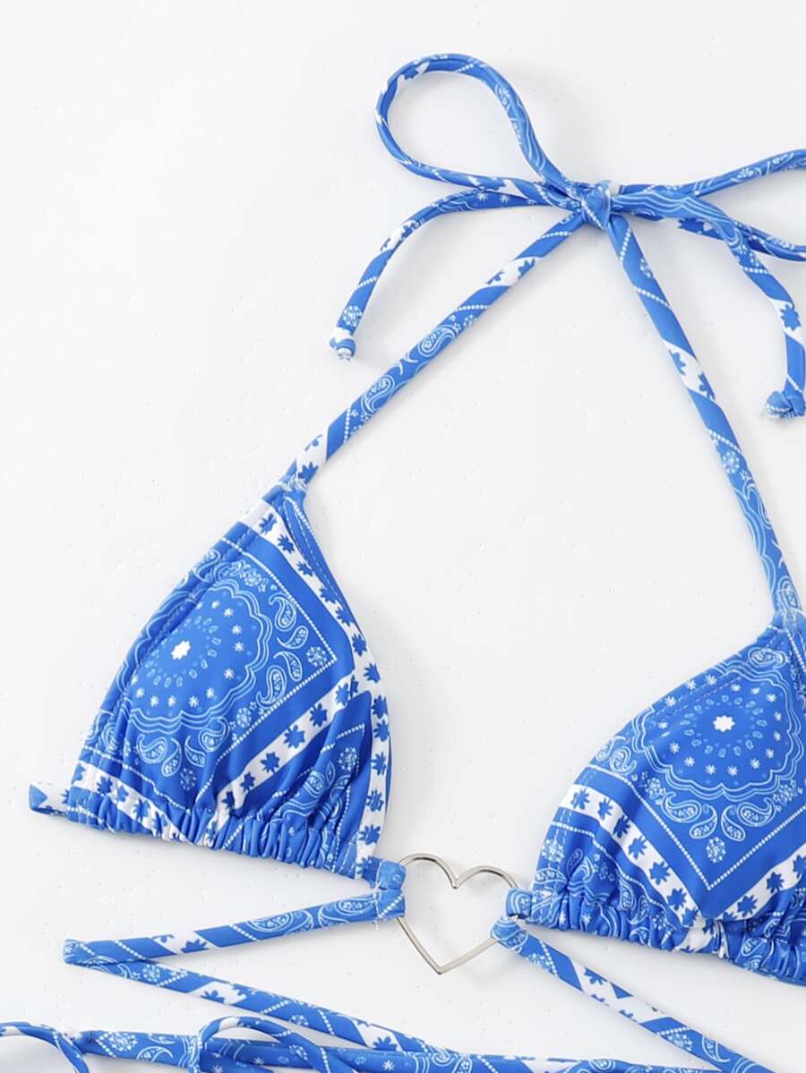 Sweetness Paisley Scarf Print Criss Cross Heart-Ring Linked Bikini