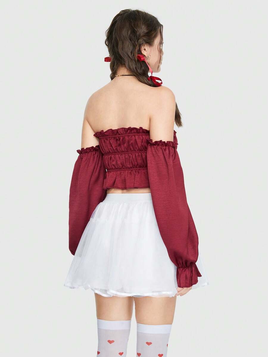Sweetness Solid Off The Shoulder Ruffle Hem Crop Costume Blouse