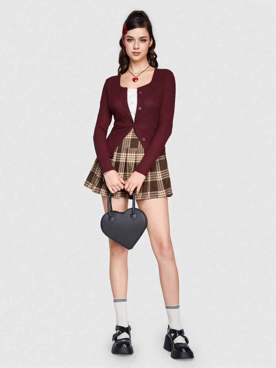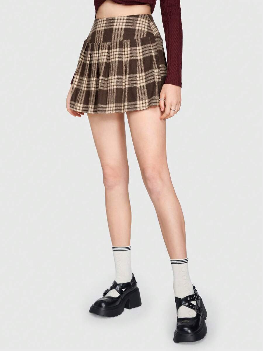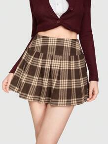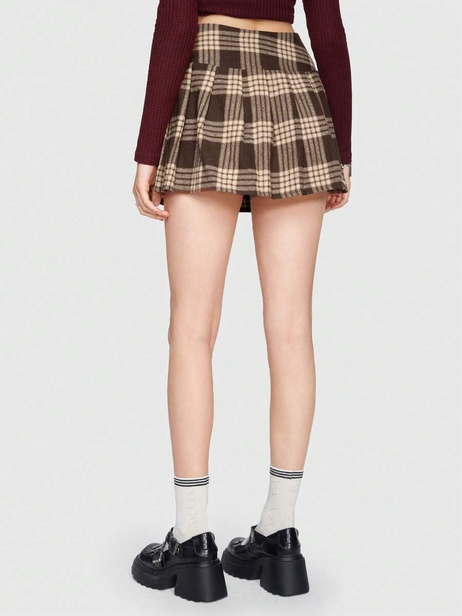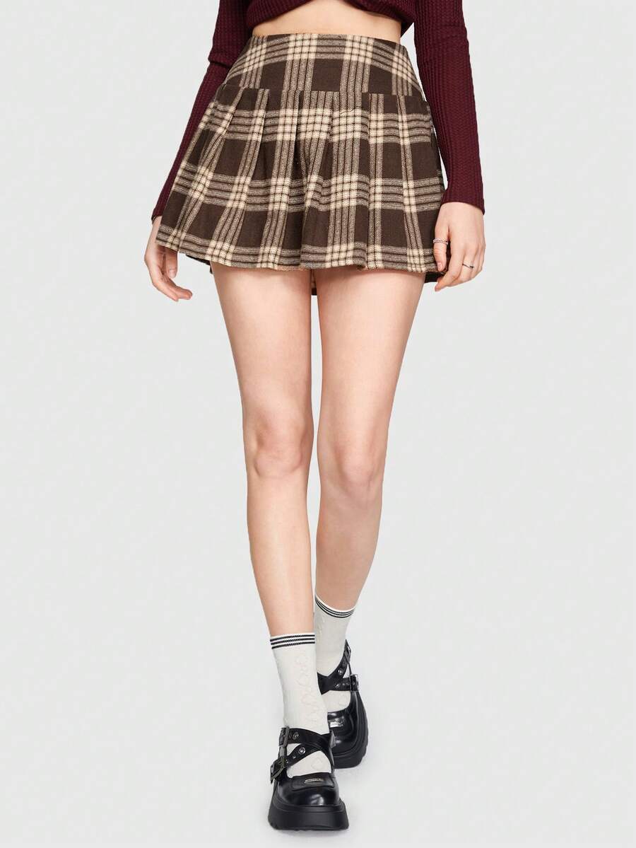 Sweetness Women's Brown Plaid Pattern Sweet And Cute Vintage Casual Skirt