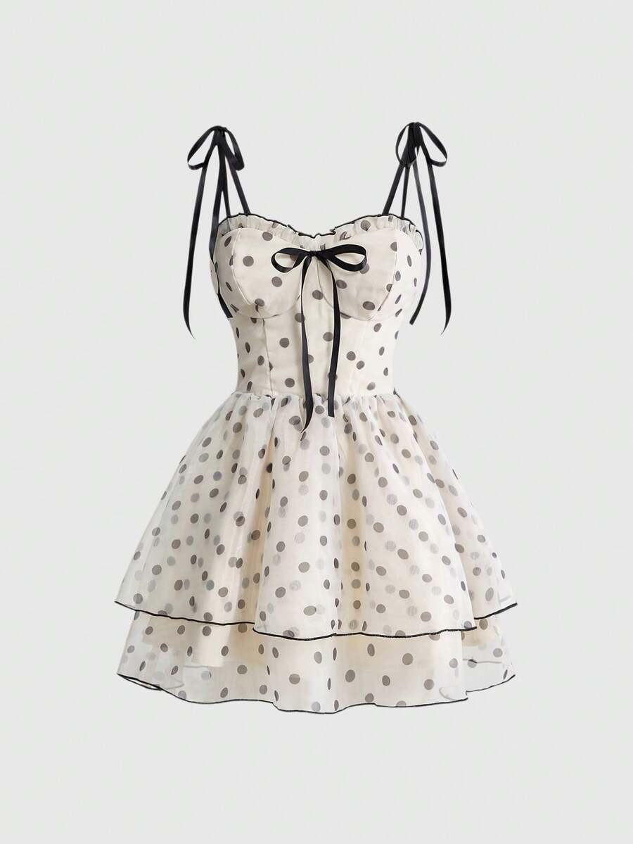 Sweetness Women's Retro Polka Dot Print Sweet Mini Dress, Puff Princess Dress, Palace Style, Suitable For Birthday, Cruise Travel, Elegant Party, Graduation Ceremony, Music Festival, New Year And Other Occasions