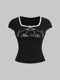 ROMWE Avant Women's Y2K All-Match Versatile Tight Fit Round Neck Medical Device Graphic T-Shirt
