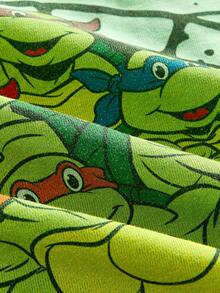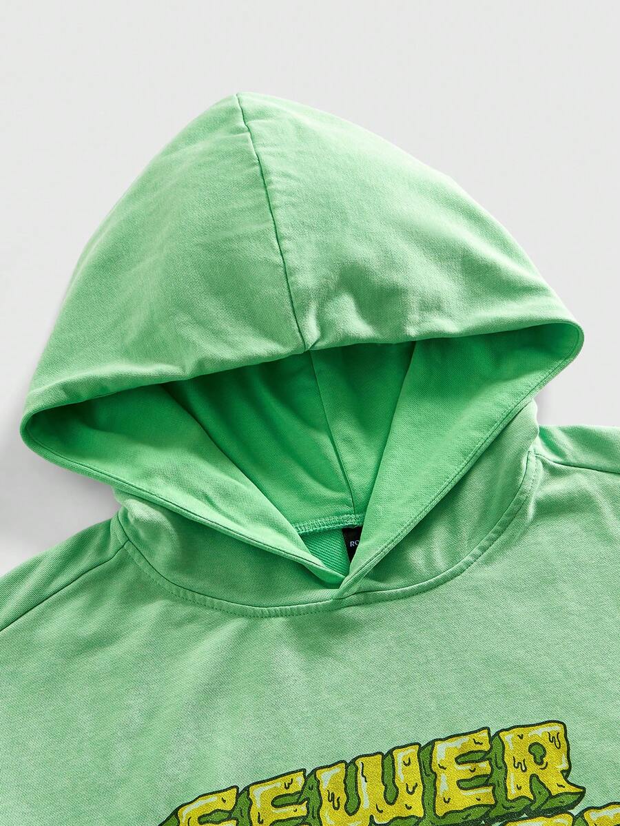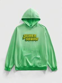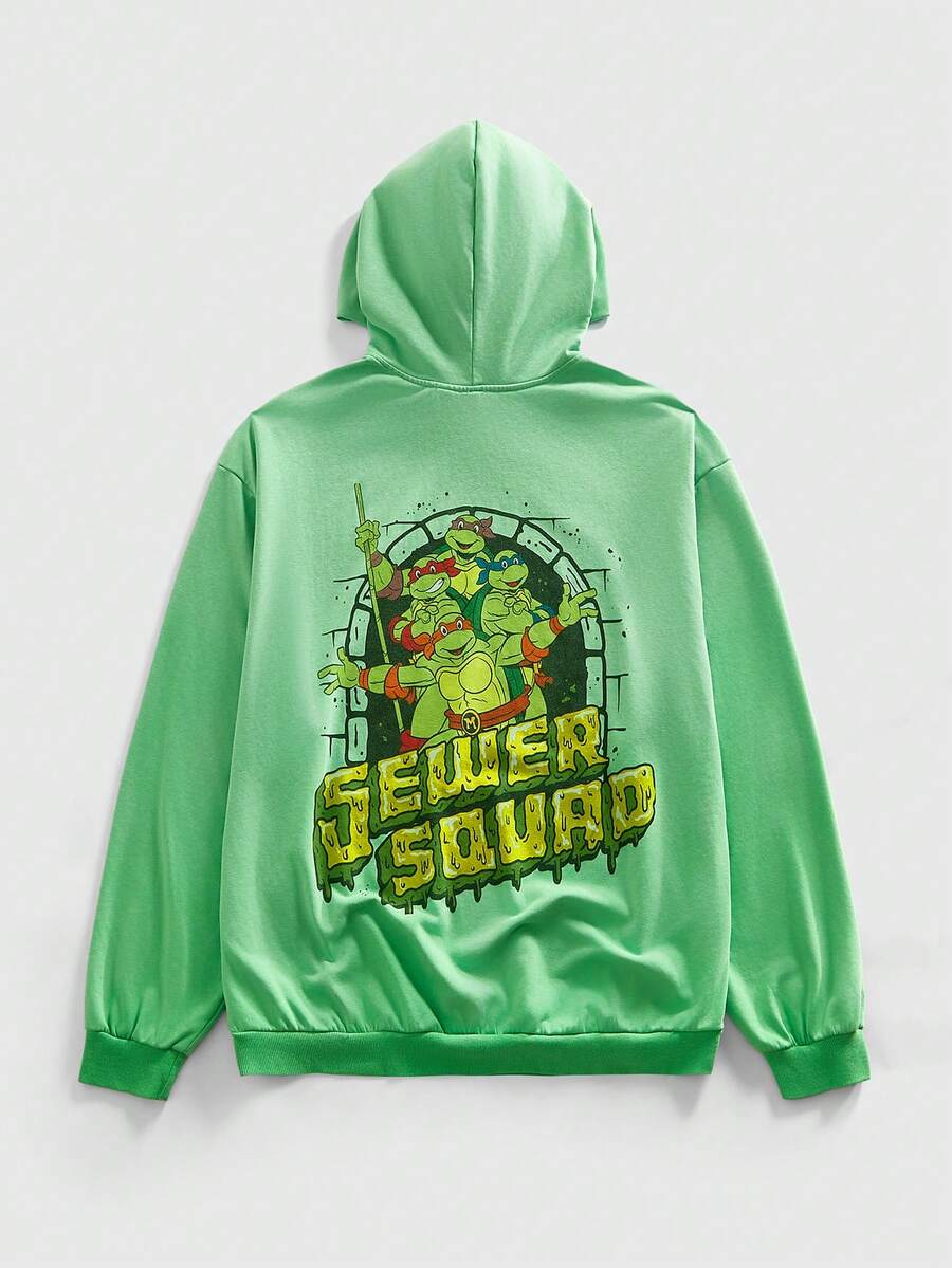 TEENAGE MUTANT NINJA TURTLES X ROMWE Street Life Men's Casual Letter Pattern Kangaroo Pocket Hoodie, Autumn