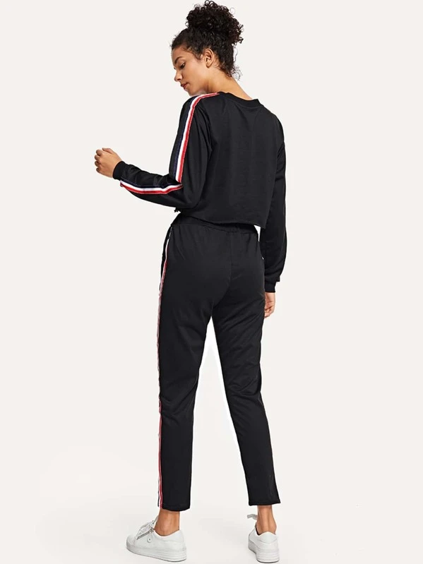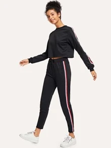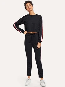 Tape Detail Crop Top With Drawstring Pants
