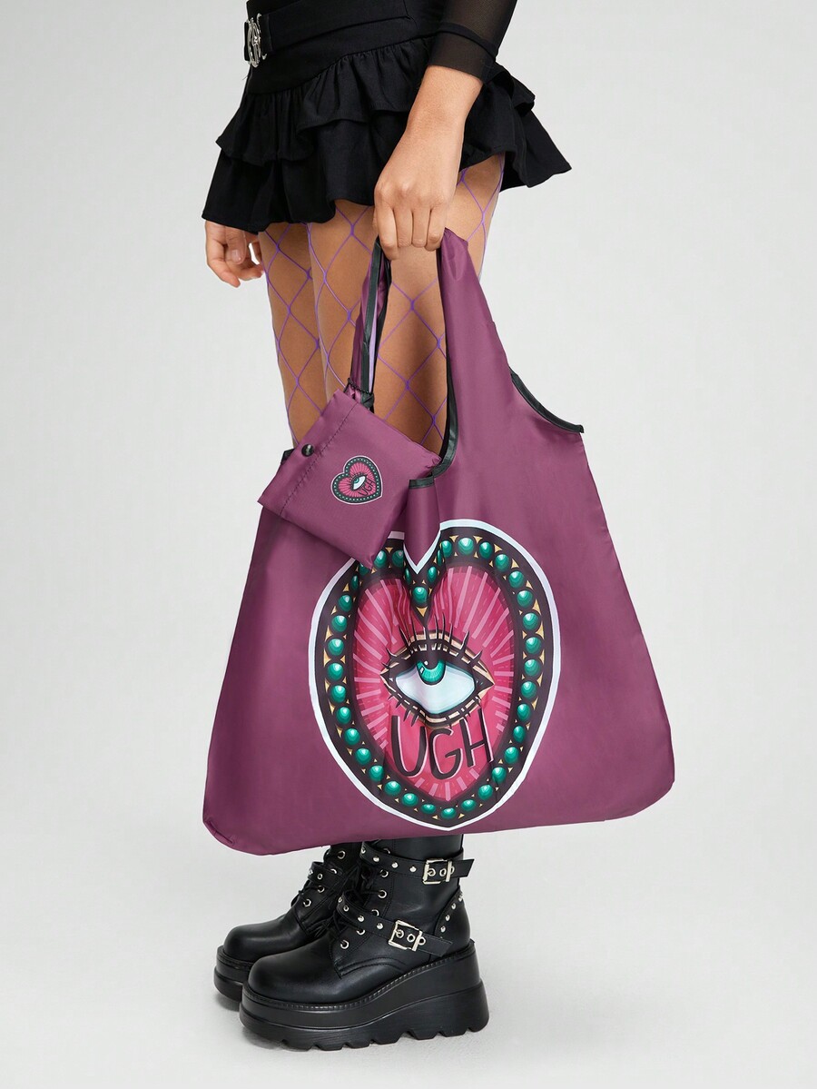 TarrynAnnIllustration 2pcs/Set Cartoon Fashionable Big Eye Pattern Storage Bags With Large Capacity, Foldable Shopping Tote Bag With Coin Purse, Product Code: 104151