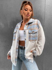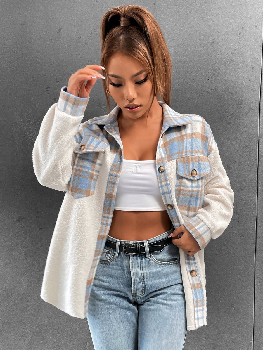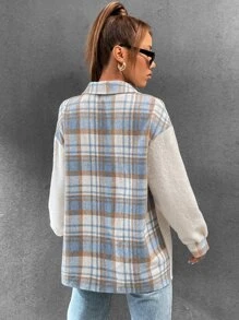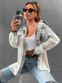 Tartan Print Teddy Panel Drop Shoulder Coat