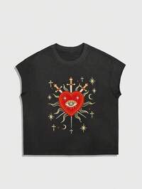 Street Life Teen Boy Eye Graphic Black Crew Neck Casual Tank Top