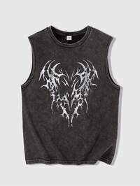 Street Life Gothic Print Loose Cropped Snowflake Vest, 2000s Style
