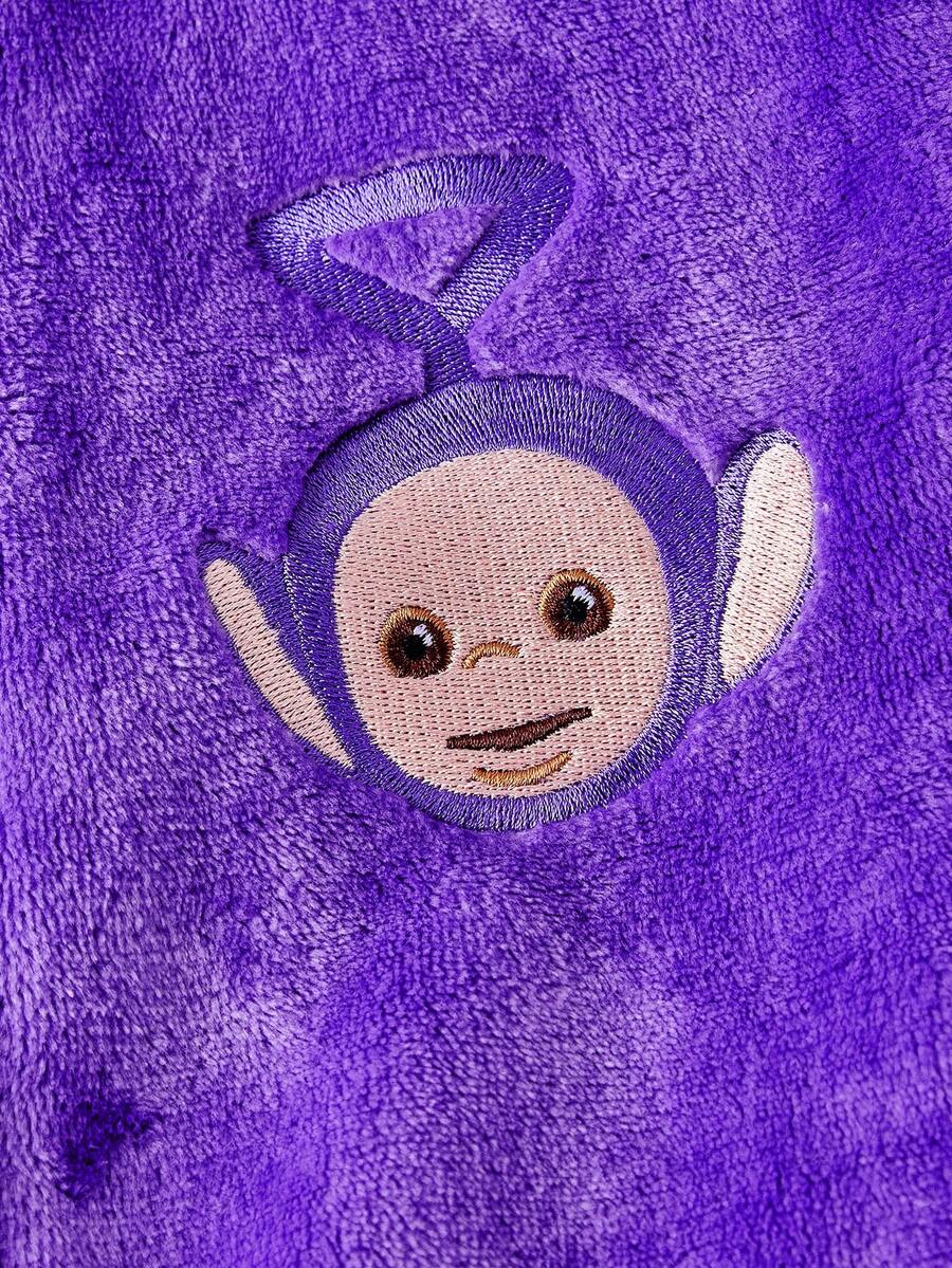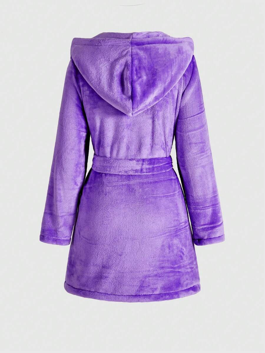 Teletubbies X ROMWE Cute Tinky Winky Embroidered Plush Front-Open Hooded Bathrobe With Belt , Fluffy Cozy Winter