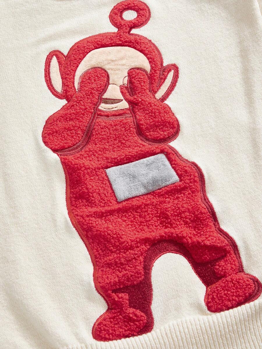 Teletubbies X ROMWE Women's Cartoon Flocked Asymmetrical Shoulder Loose Oversized Sweater, Autumn/Winter