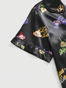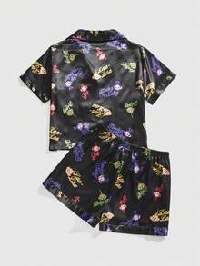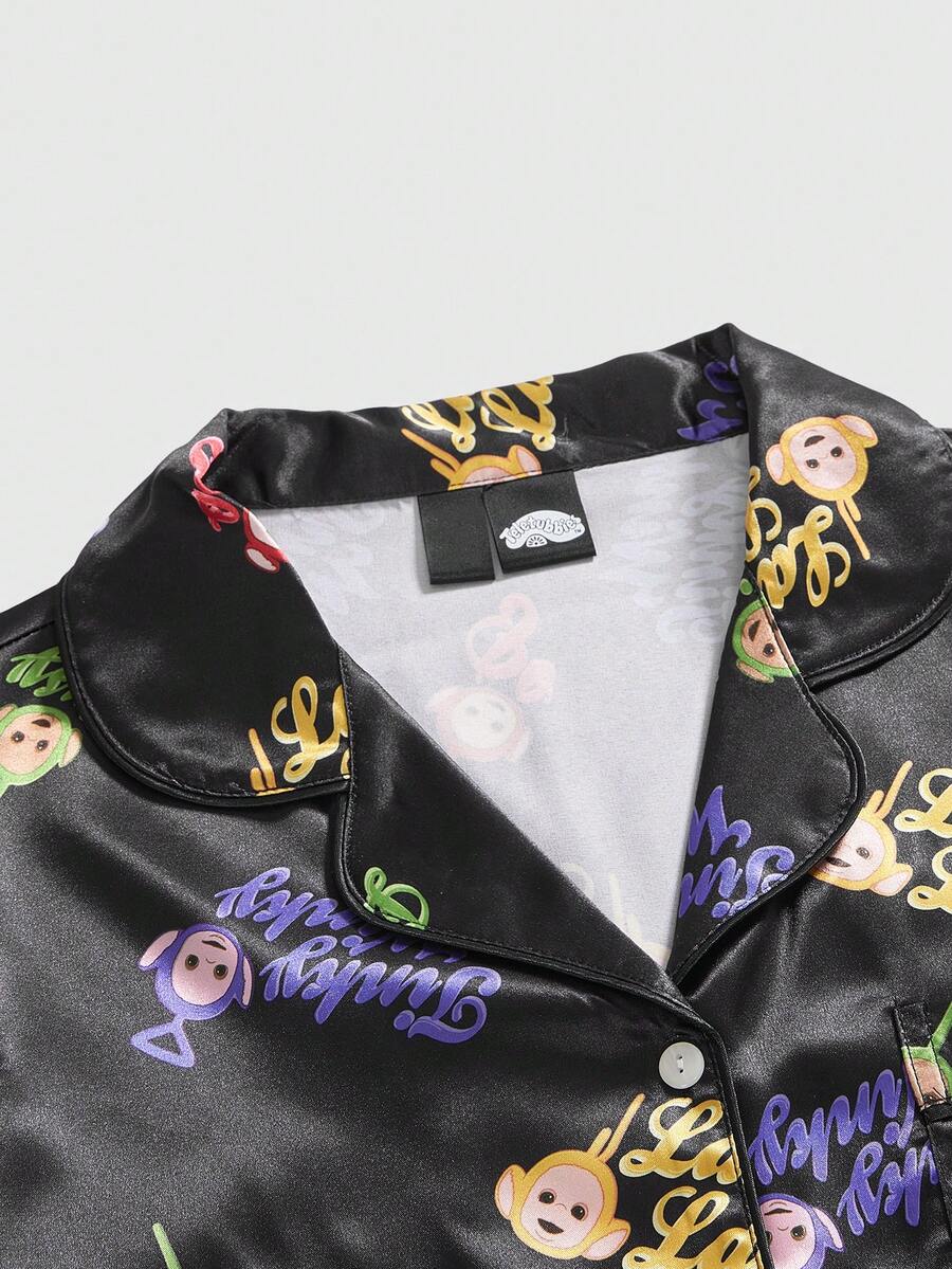 Teletubbies X ROMWE Women's Cute Cartoon Print Short Sleeve Top And Shorts Pajama Set, Summer