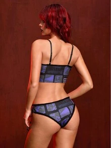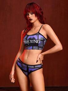 The Conjuring X ROMWE Women Horror Movie Letter Graphic Wireless Bra & Brief Set