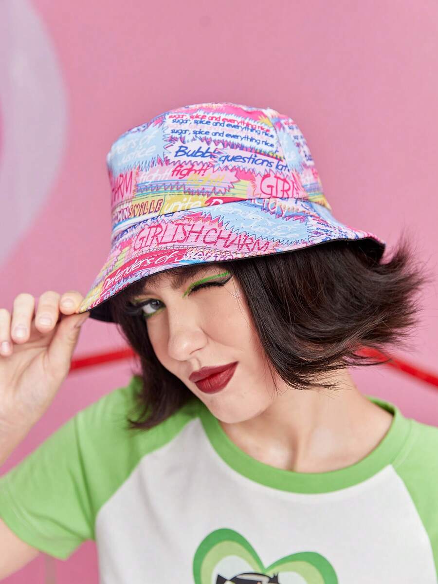 The Powerpuff Girls | ROMWE 1pc Women Letter Graphic Casual Bucket Hat For Daily Decoration