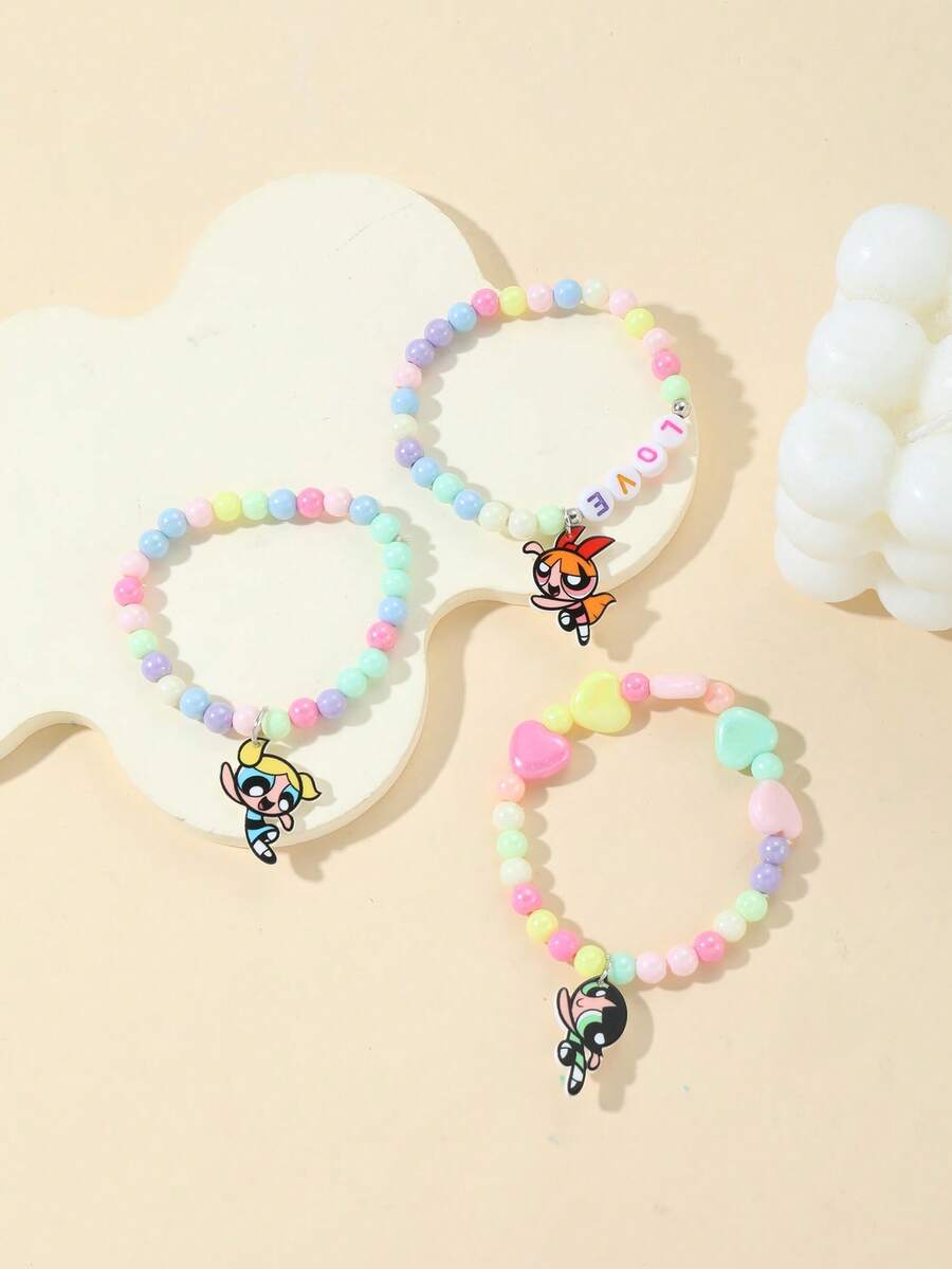 The Powerpuff Girls | ROMWE 3 Piece Beaded Alphabet Bracelet