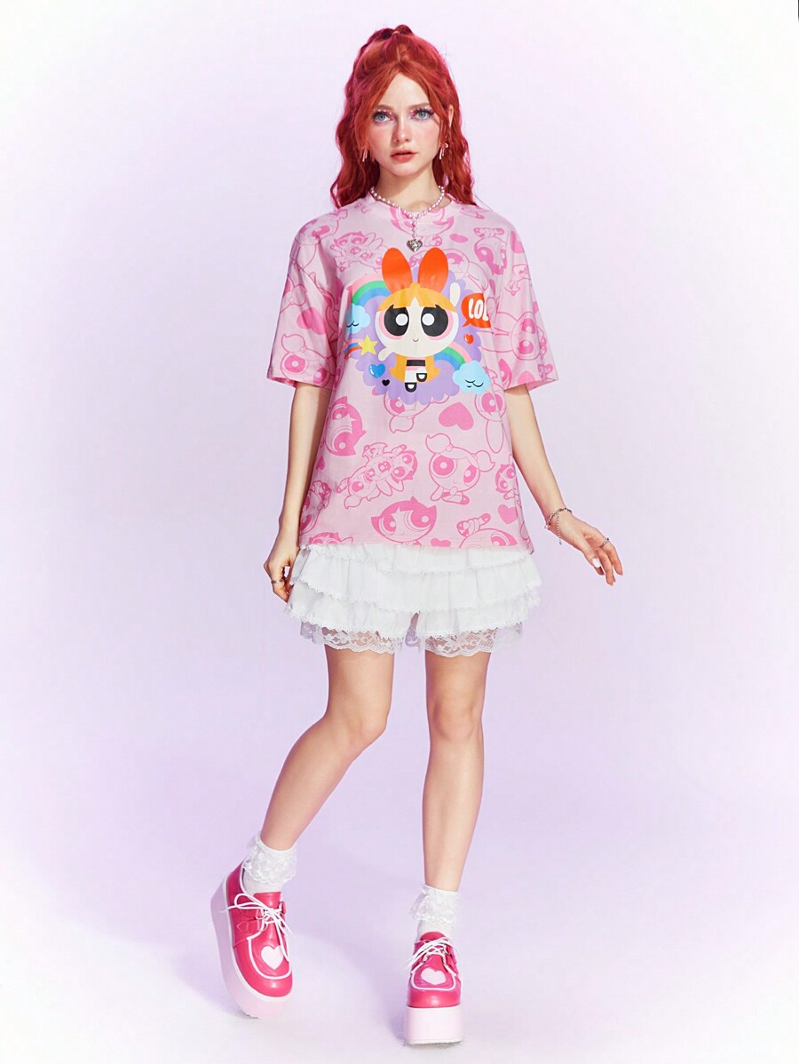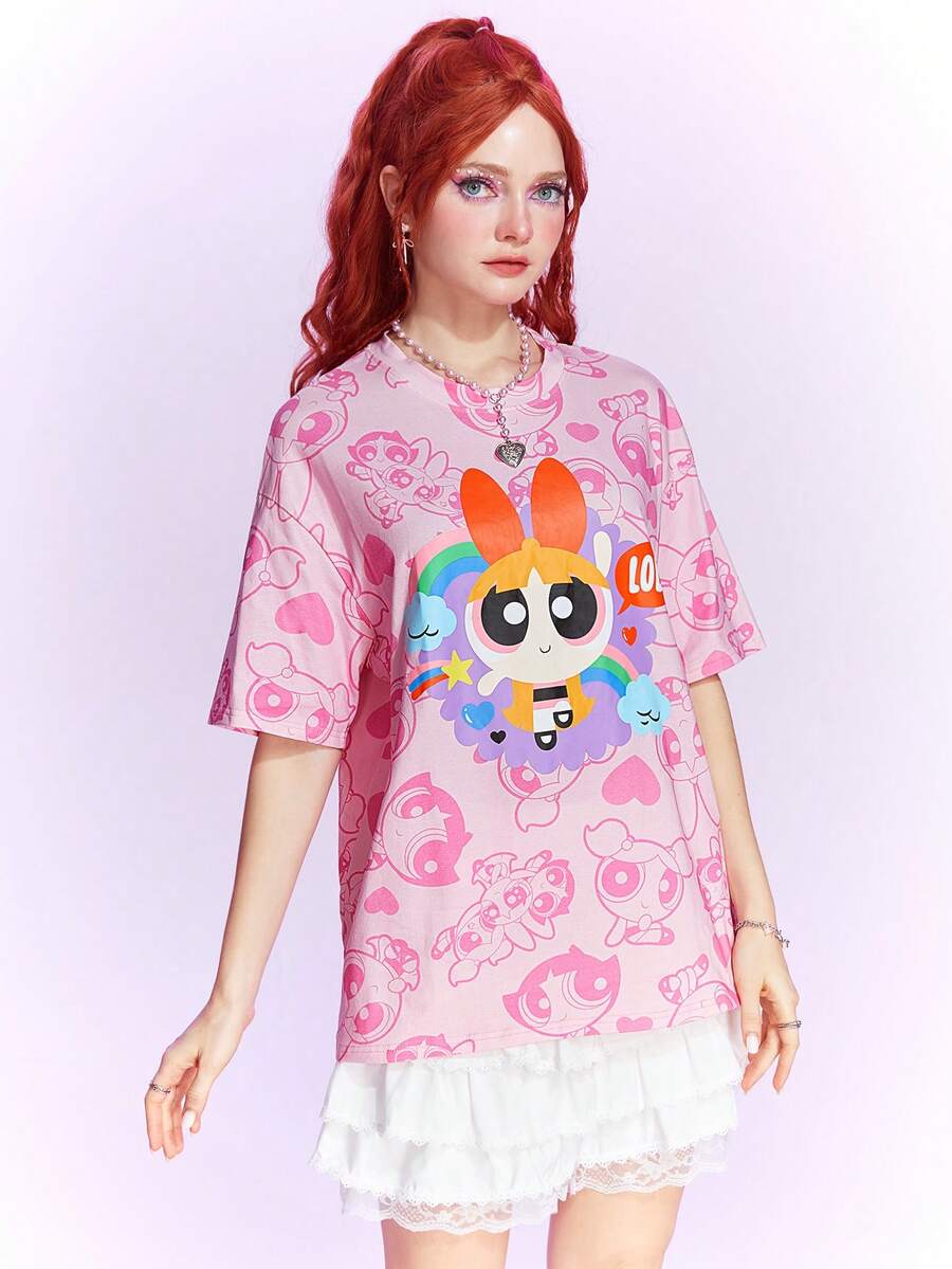 The Powerpuff Girls | ROMWE Cartoon Graphic Drop Shoulder Tee