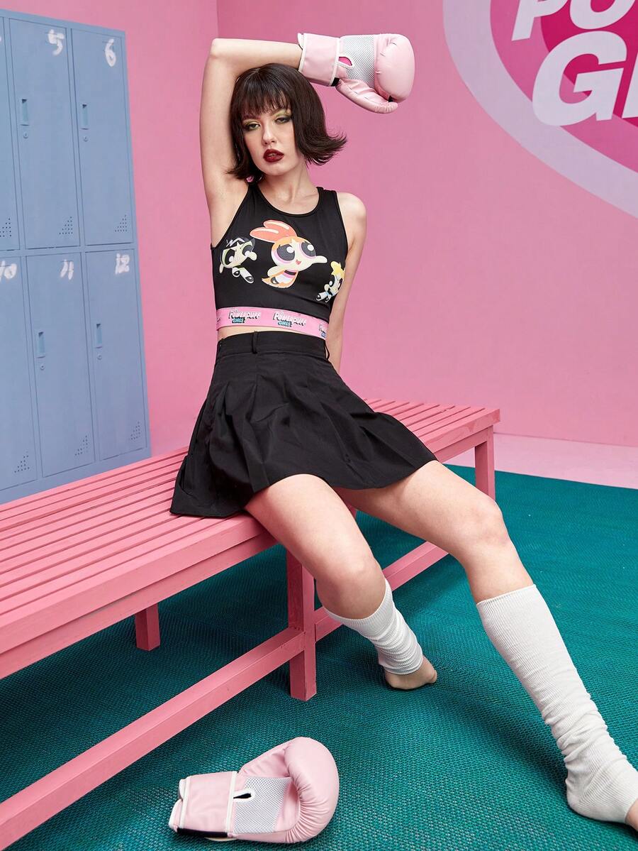The Powerpuff Girls | ROMWE Cartoon Graphic Letter Tape Tank Top