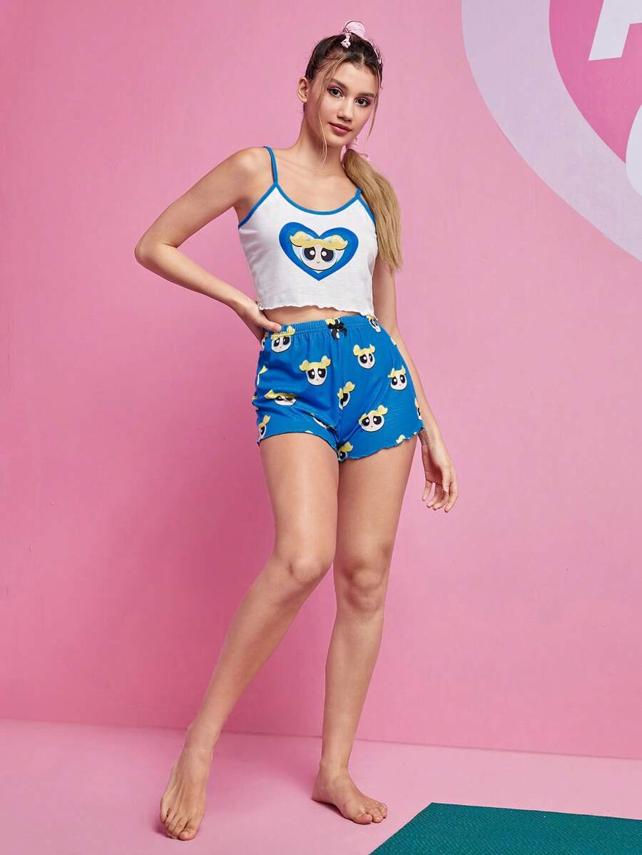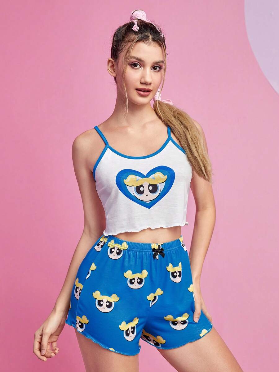 The Powerpuff Girls | ROMWE Cartoon Graphic Lettuce Trim PJ Set, School
