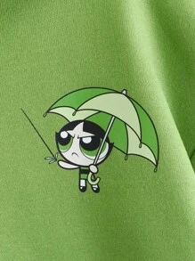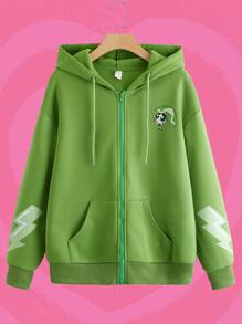 The Powerpuff Girls | ROMWE Cartoon Graphic Zip Up Drawstring Hoodie