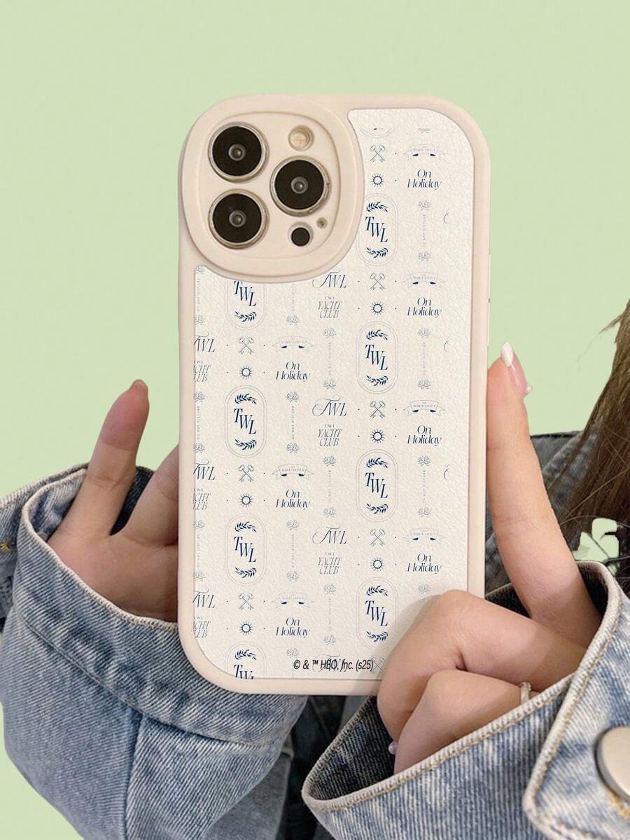 The White Lotus 1pc White Sheepskin Textual Graphics Phone Case, Suitable For IPhone 11, 12, 13, 14, 15 Pro Max, 16