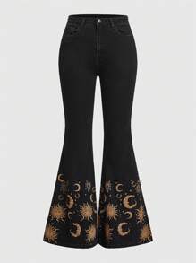 ThisUniqueVibe Sun And Moon Design Flared Jeans