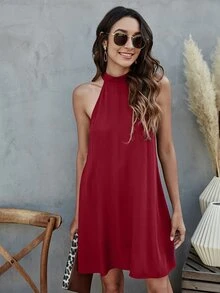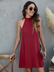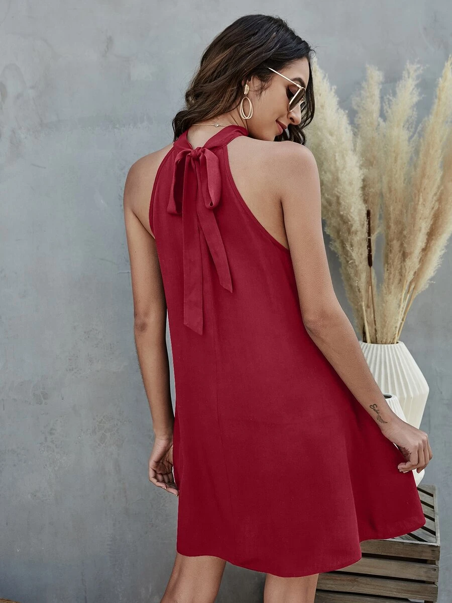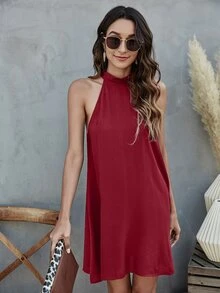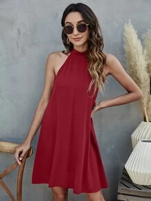 Tie Back Halterneck Solid Dress