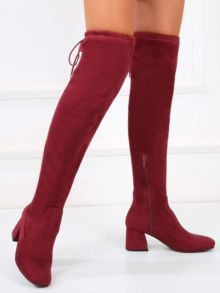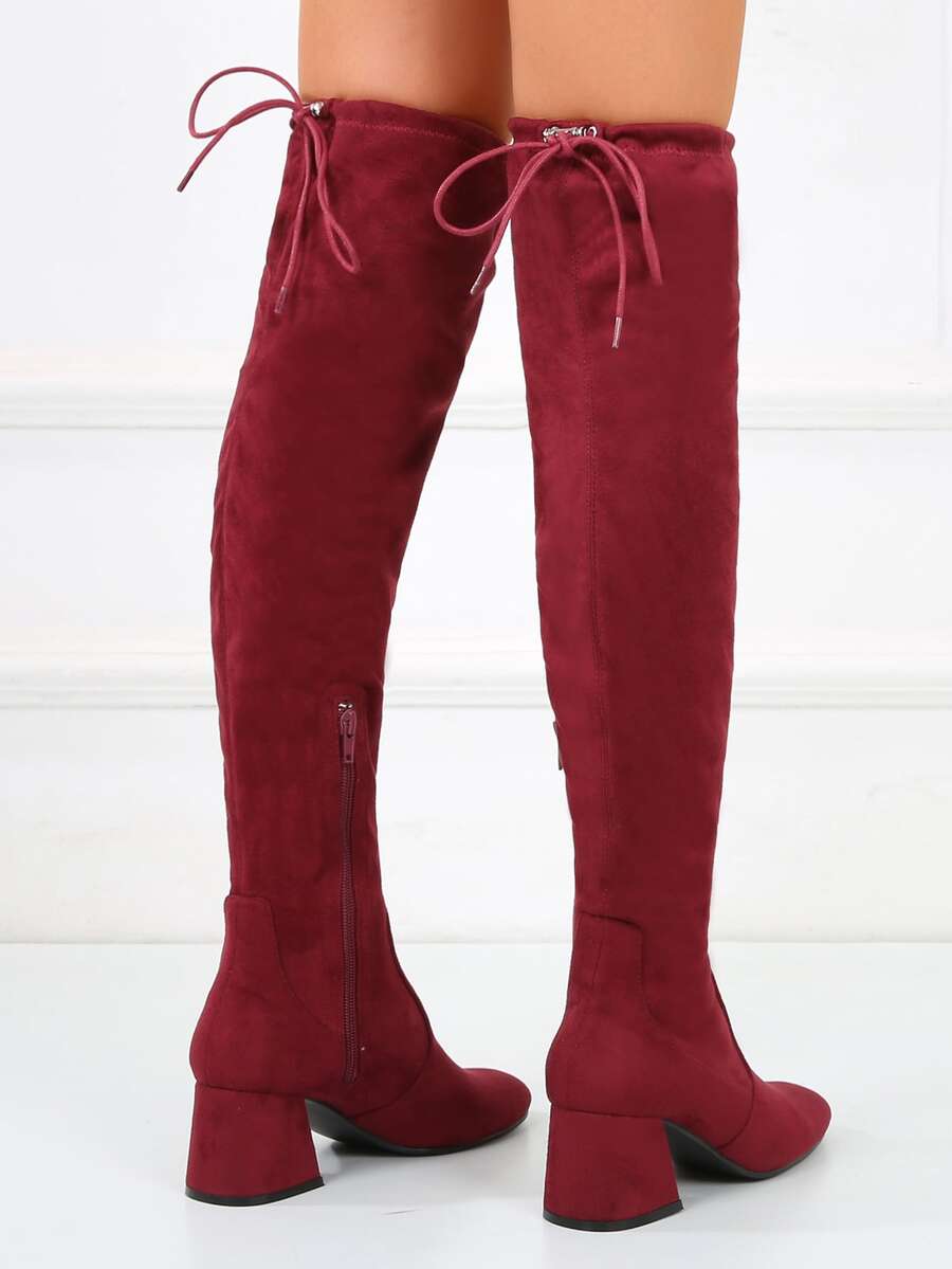 Tie Back Suedette Over The Knee Boots
