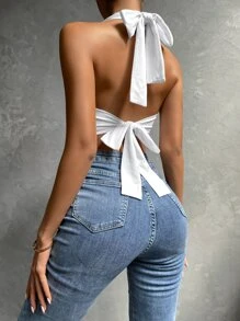 Tie Backless Asymmetrical Hem Halter Top