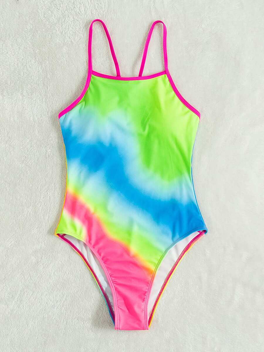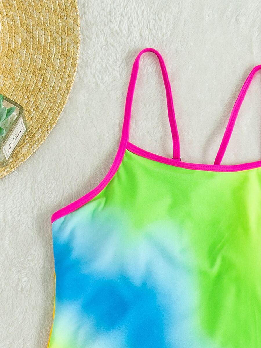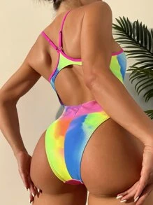 Tie Dye Cut Out One Piece Swimsuit, For Summer Beach Vacation