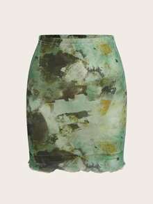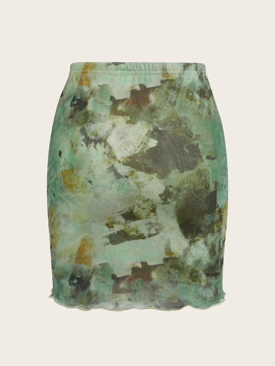 Fairycore Tie Dye Lettuce Trim Skirt