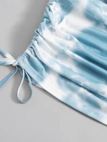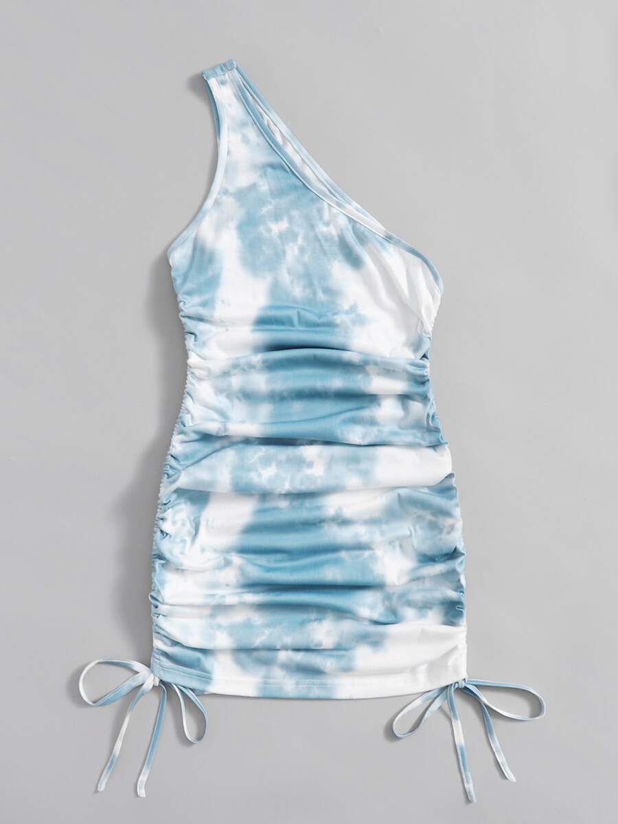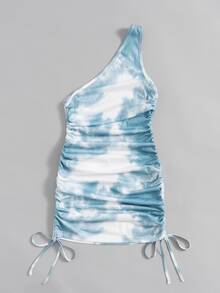 Tie Dye One Shoulder Drawstring Dress