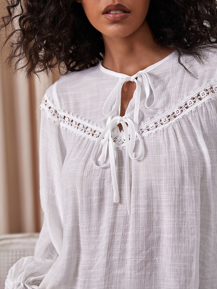 Tie Neck Lace Insert Top