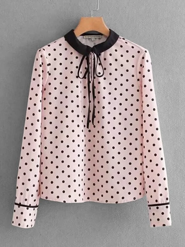Tie Neck Polka Dot Blouse