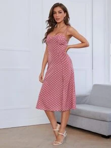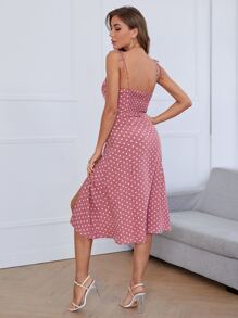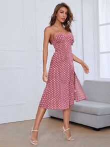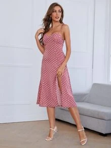 Tie Shoulder High Split Hem Polka Dot Bustier Cami Dress