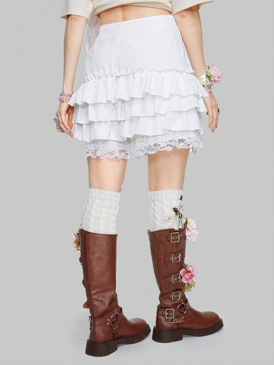 Kawaii Tie Waist Wide Waistband Ruffled Hem Skort