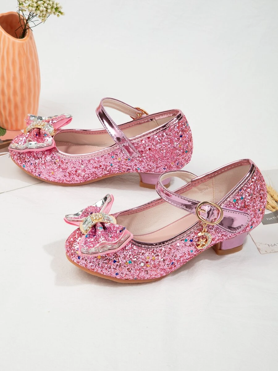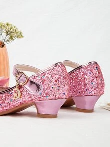 Toddler Girls Glitter Decor Chunky Heeled Flats