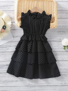 Toddler Girls Polka Dot Ruffle Neck Layered Dress