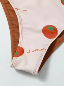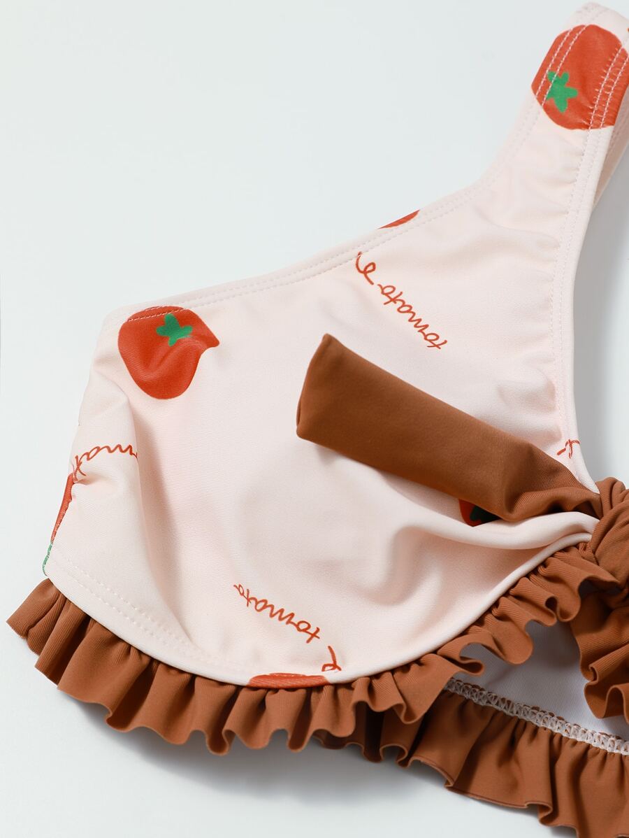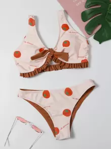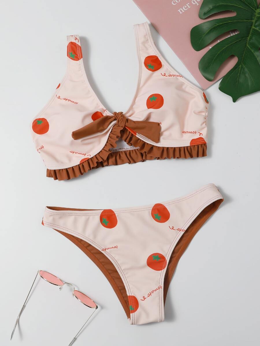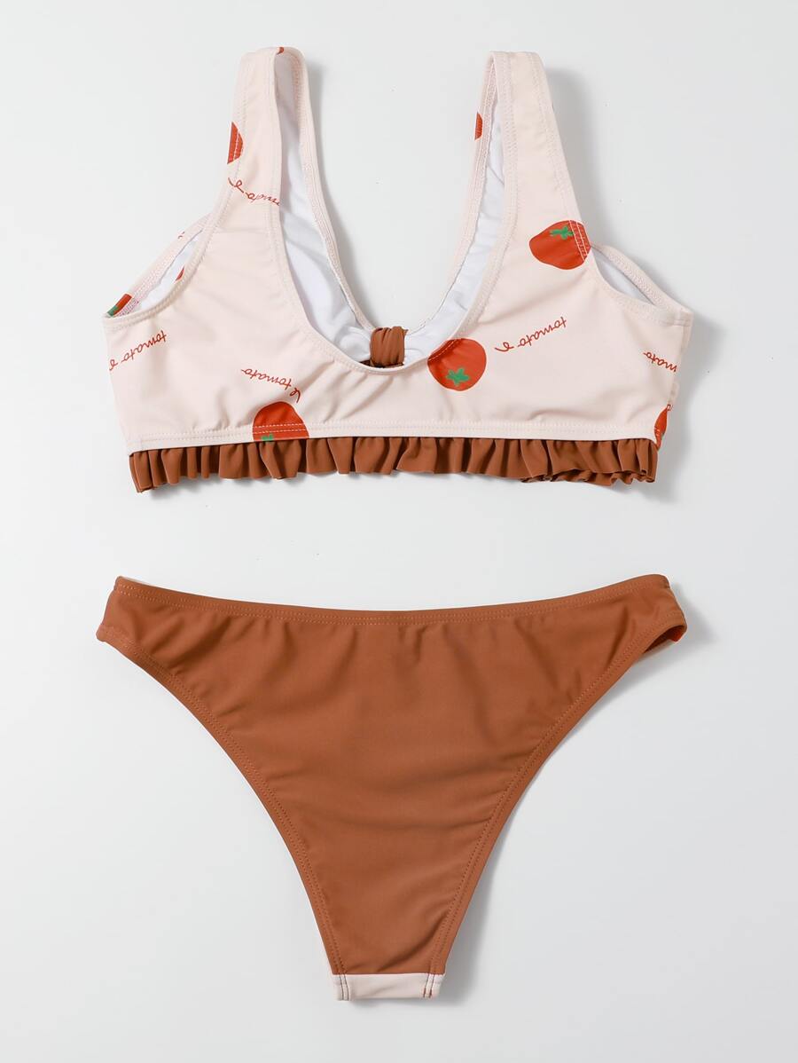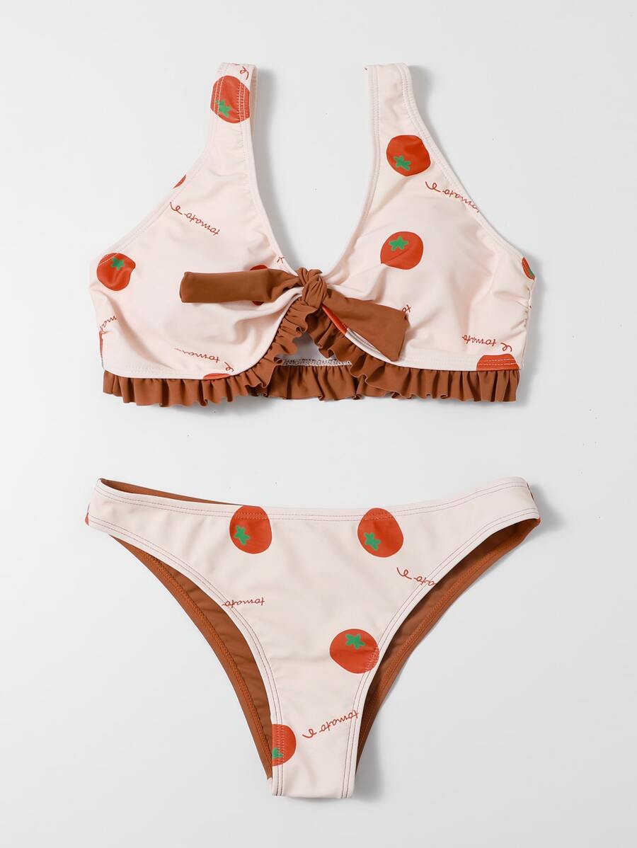 Tomato Print Frill Bikini Set For Summer Beach Vacation