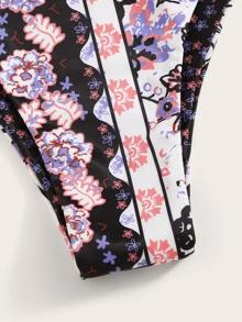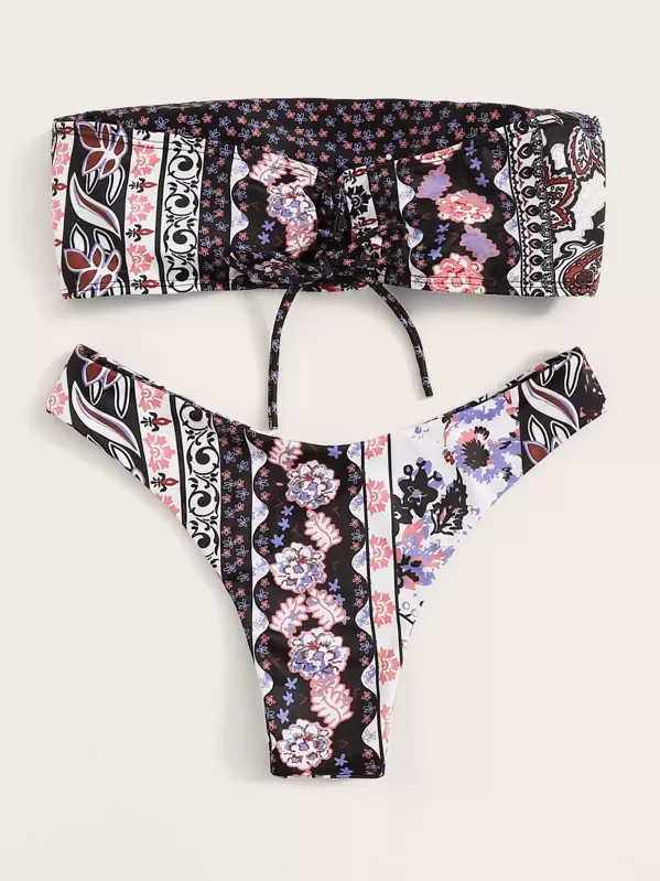 Tribal Lace Up Bandeau With High Cut Bikini Set