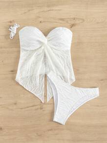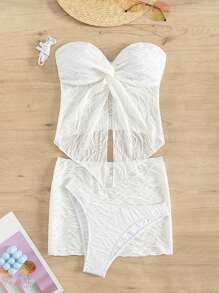 Twist Front Bandeau Rashguard With Beach Skirt Summer Beach