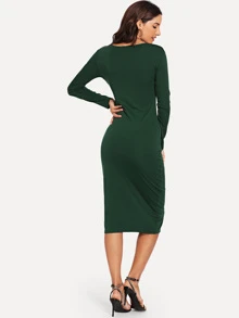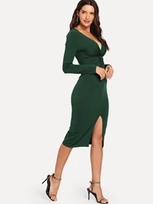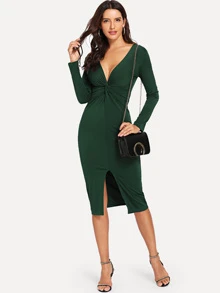 Twist Plunge Neckline Slit Midi Dress