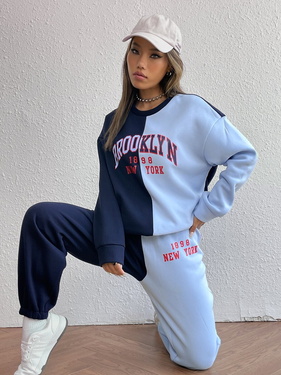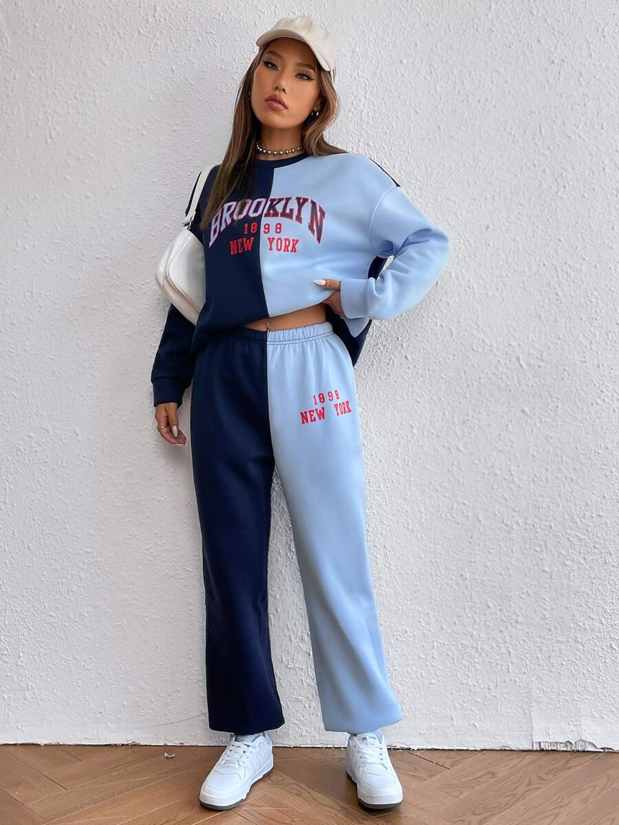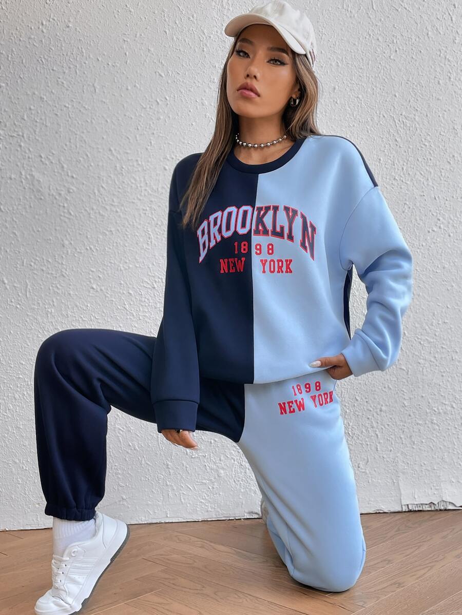 Two Tone Letter Graphic Drop Shoulder Pullover & Sweatpants