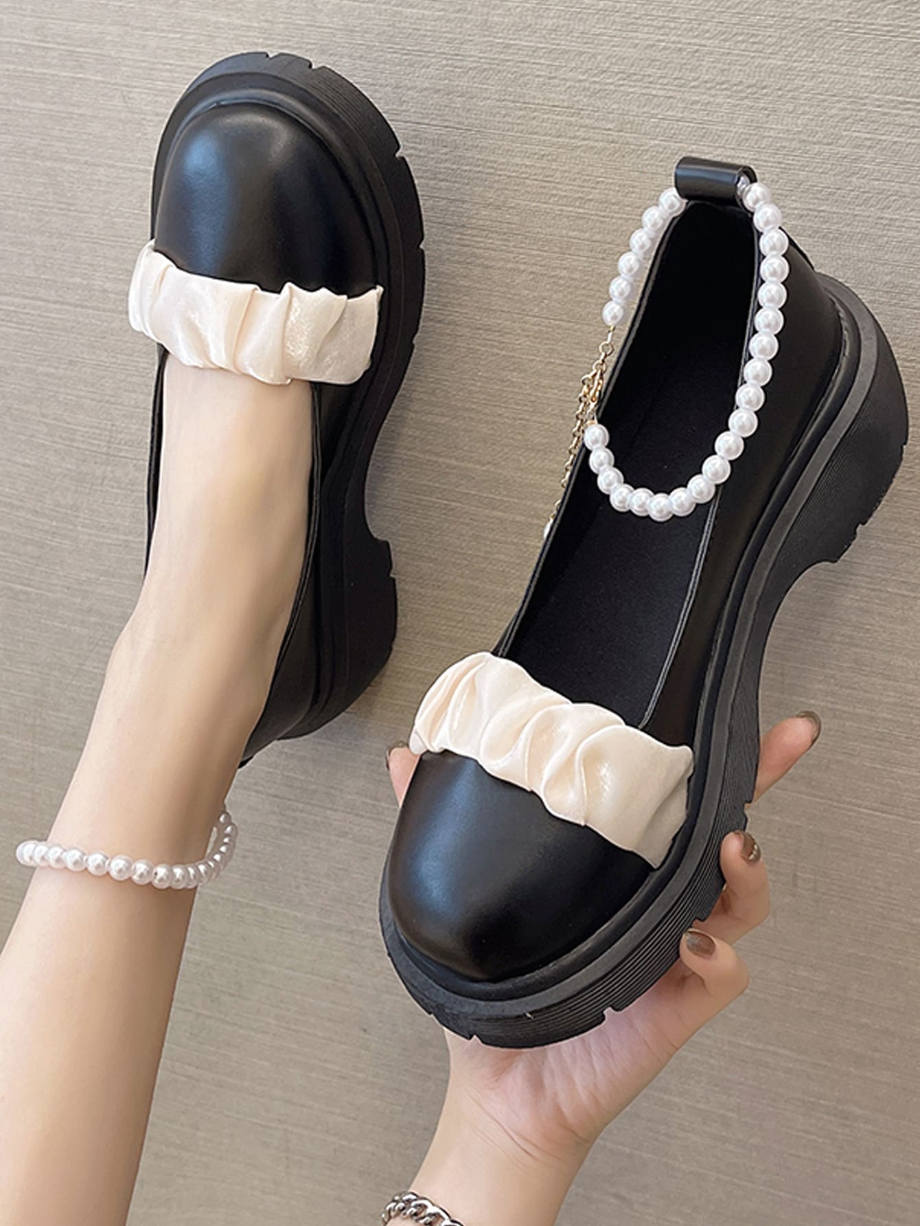 Two Tone Ruched Decor Platform Shoes