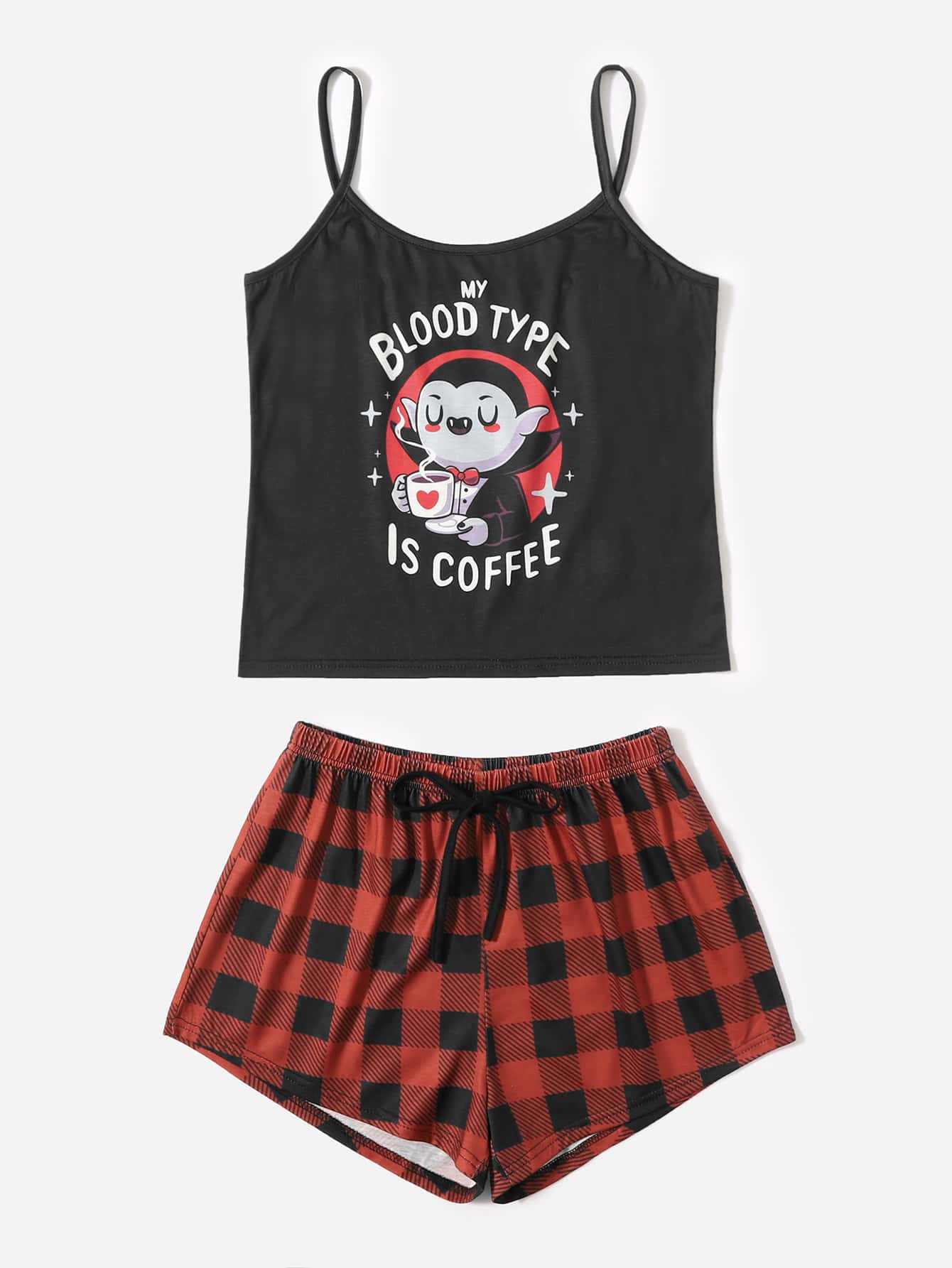 Typhoonic Cartoon Graphic Plaid Pajama Set