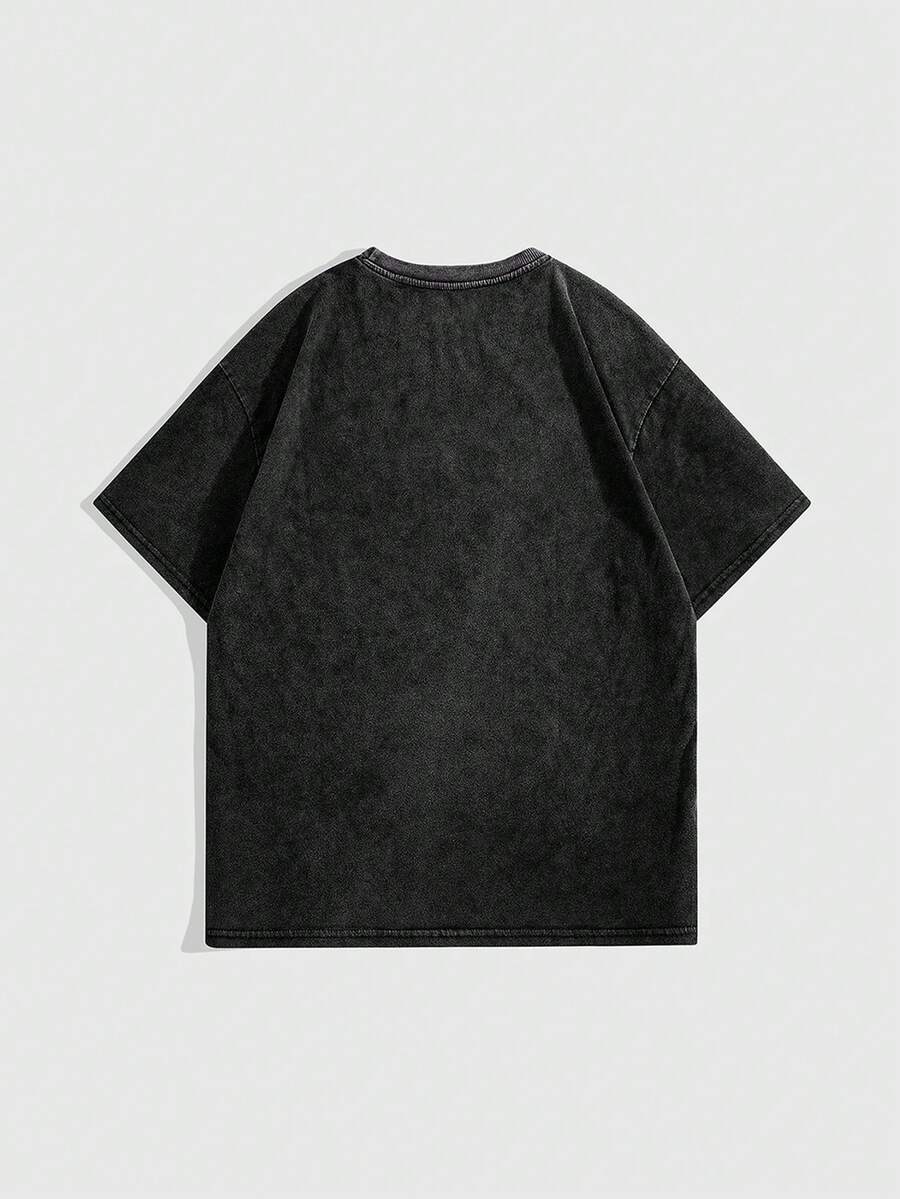Unisex Streetwear Hip-Hop Black Portrait & Snow Print Loose T-Shirt For Men & Women