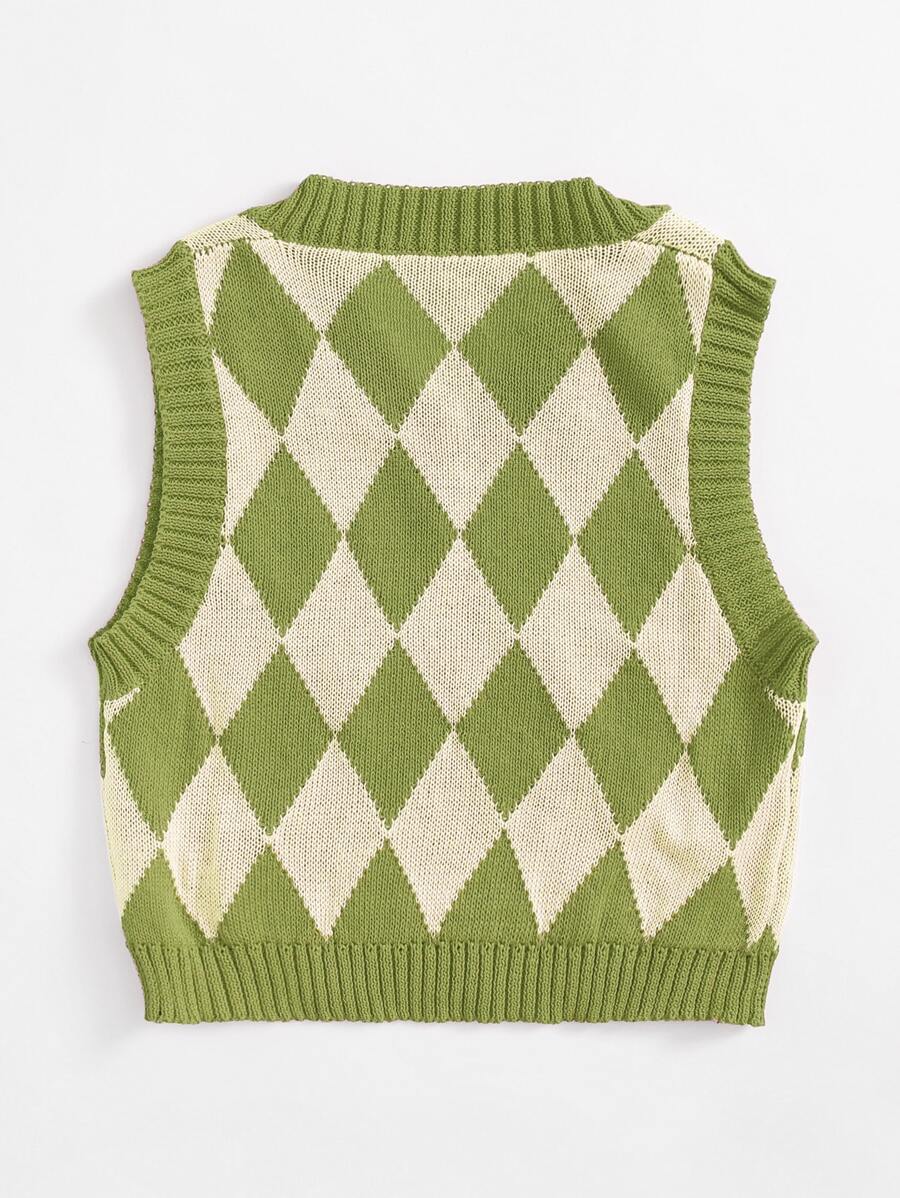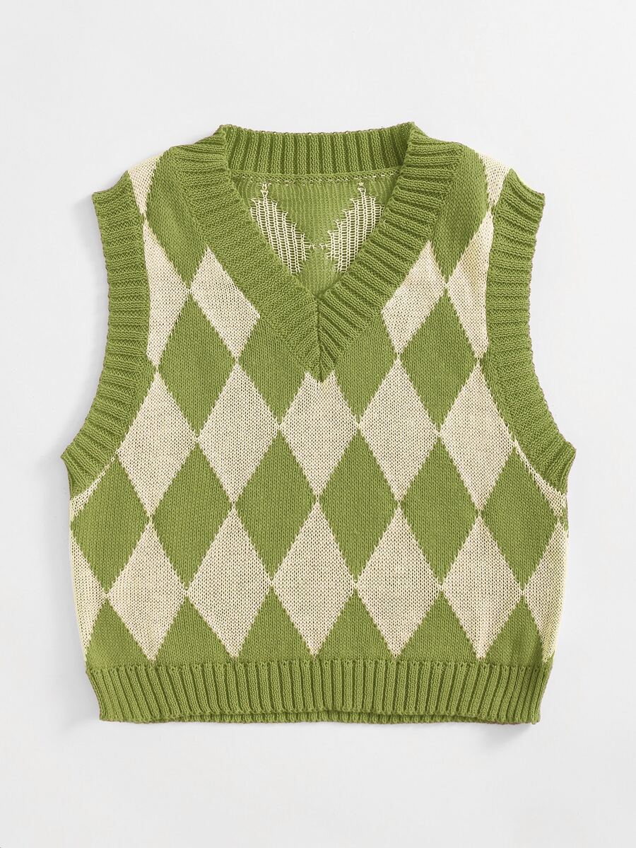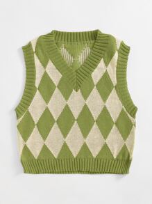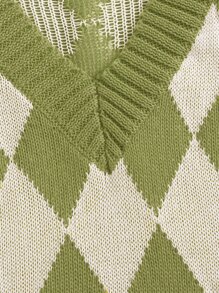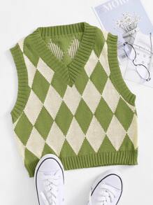 V-neck Argyle Pattern Sweater Vest