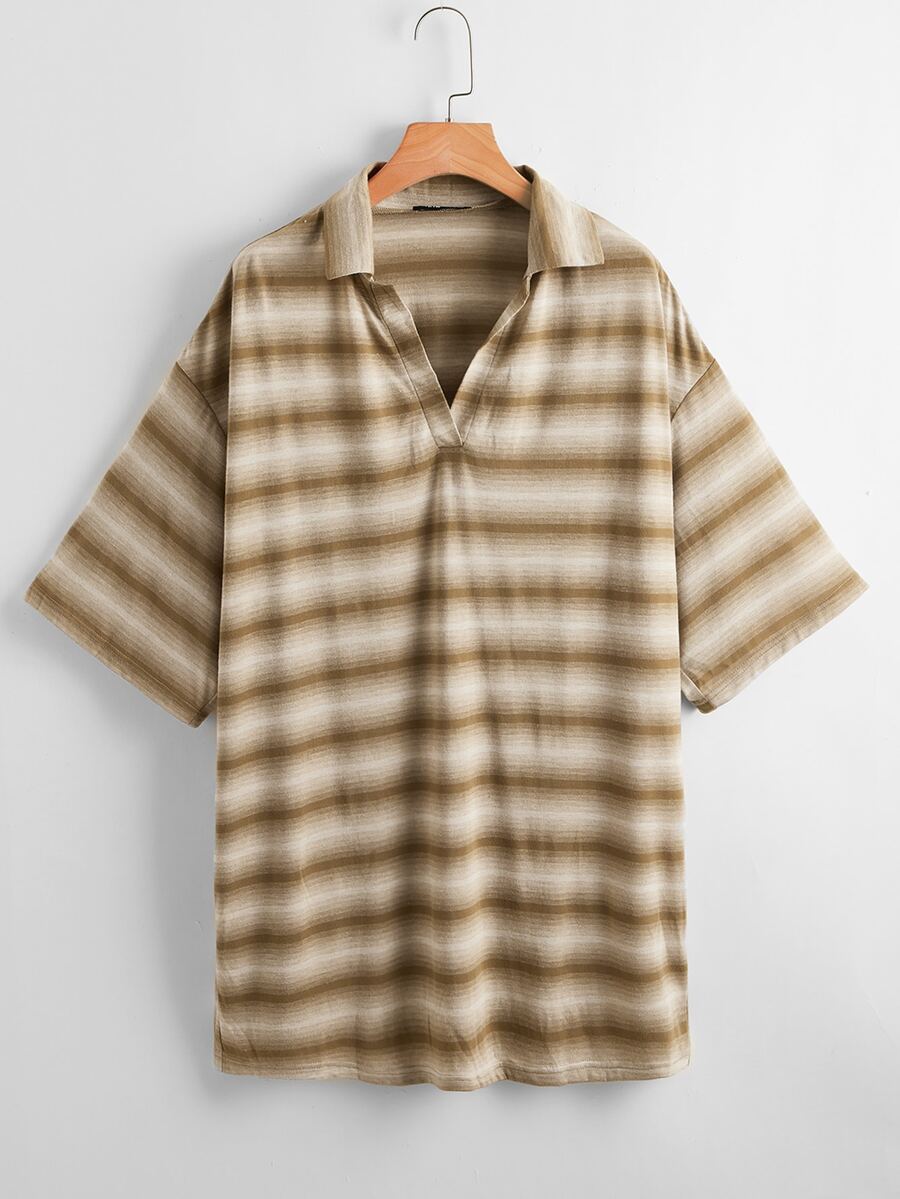 V-neck Collared Striped Dress
