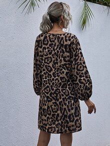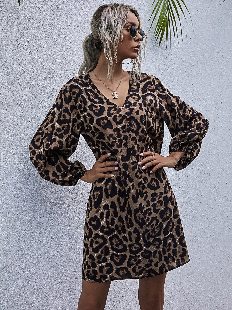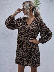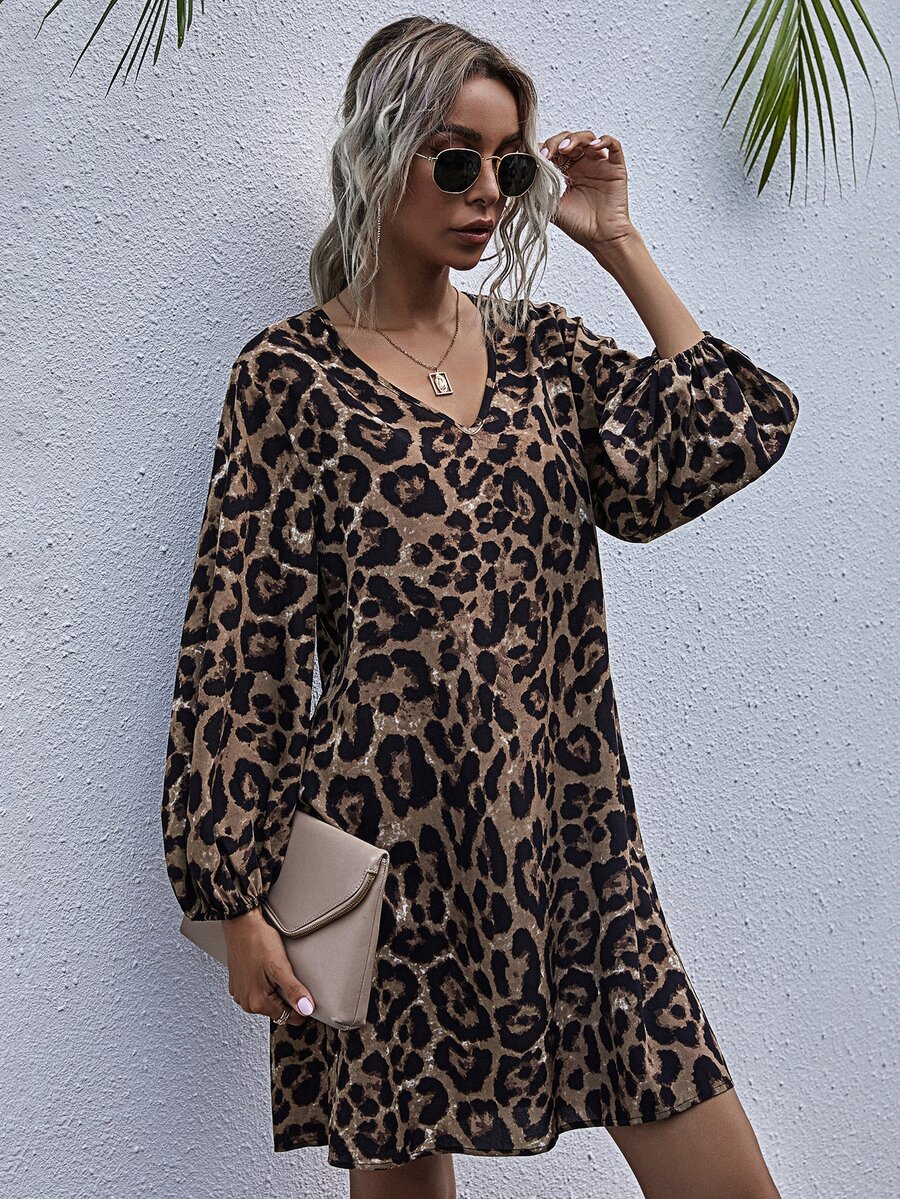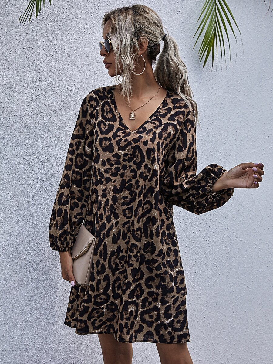 V-neck Leopard Print Tunic Dress