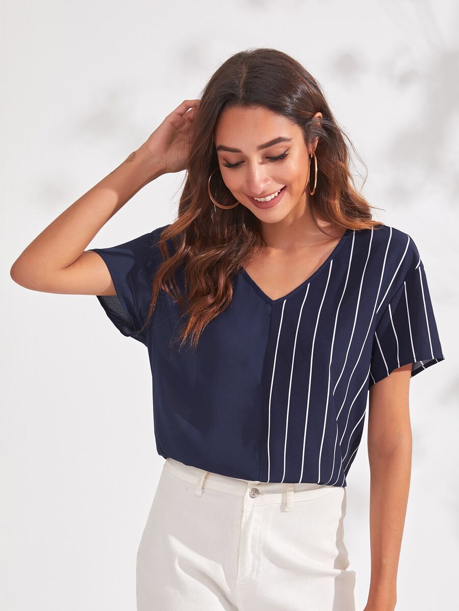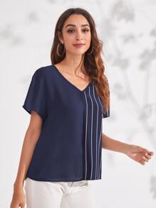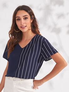 V-neck Striped Top