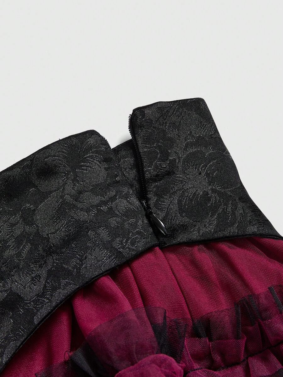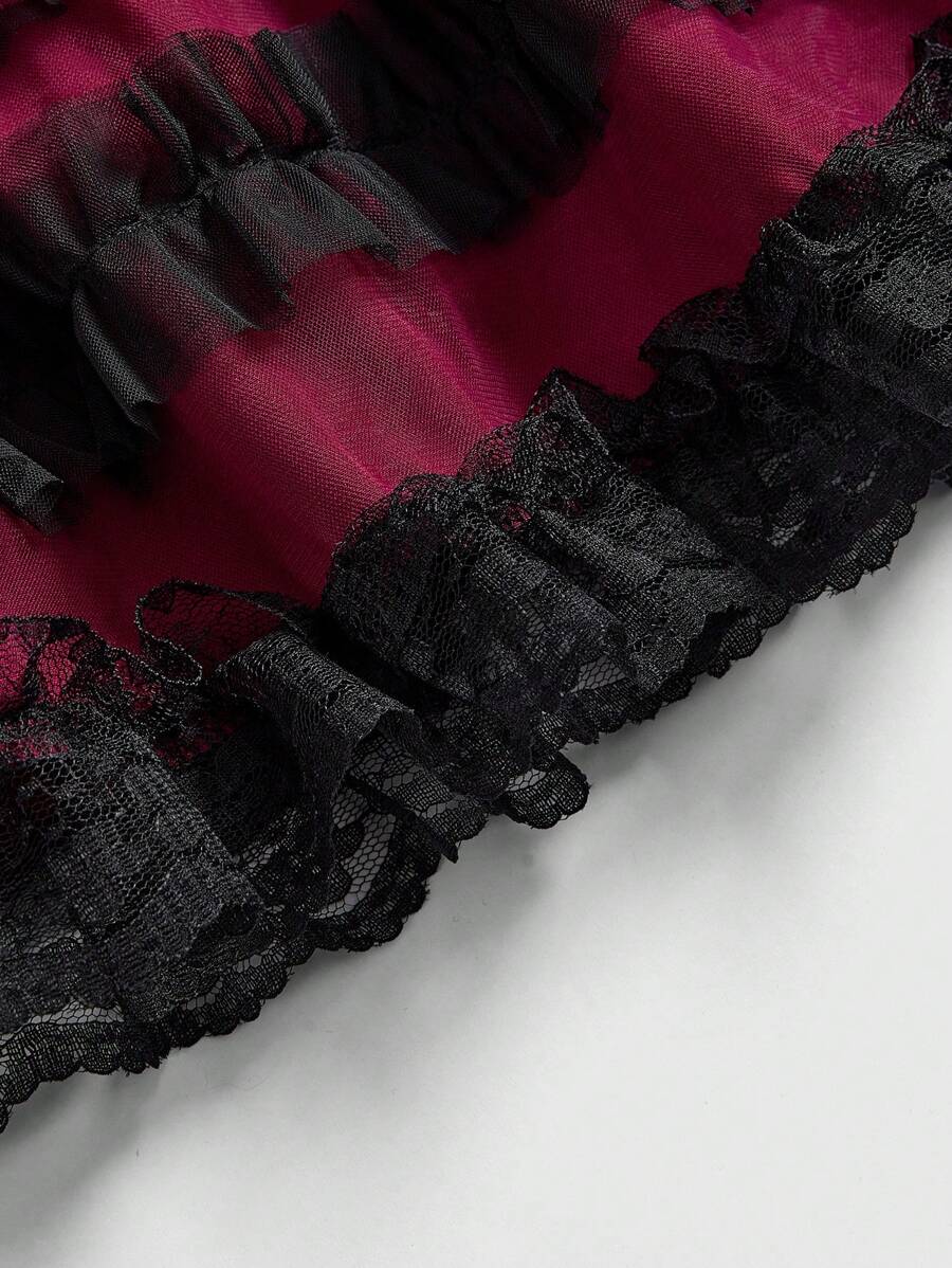 Valentine's Day Gothic Jacquard Lace & Mesh Panel Tiered Ruffle Hem Mini Skirt