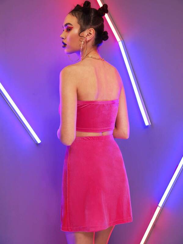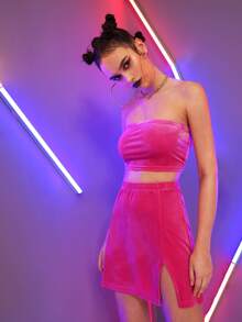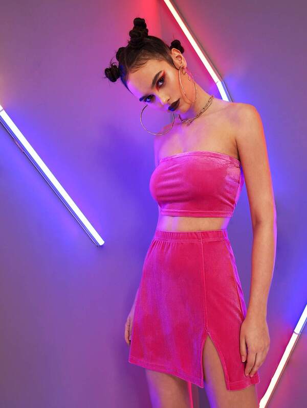 Velvet Tube Crop Top & Split Skirt Set